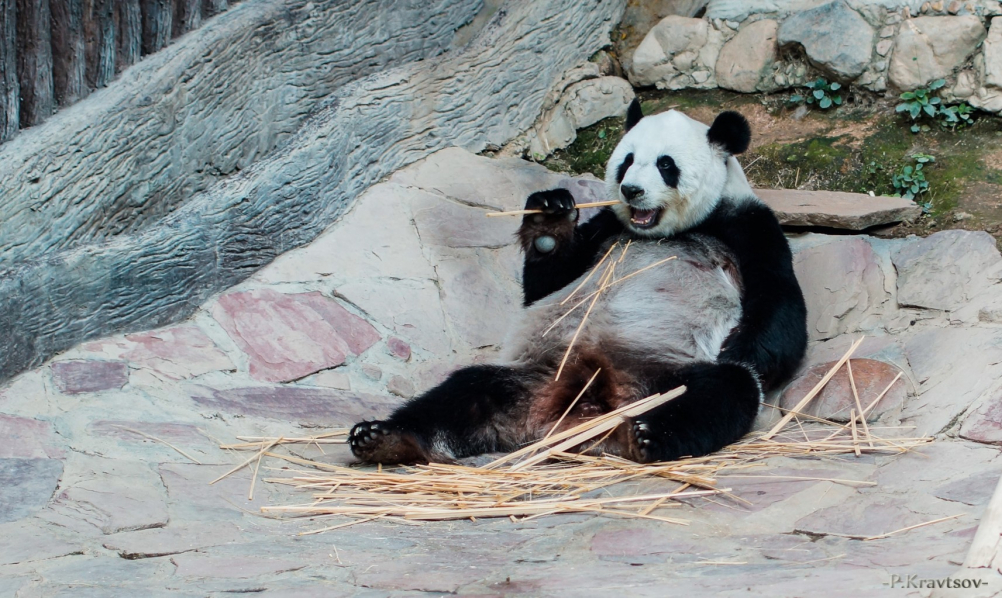 да он(а) сидит смотрит на людей ржущих над нею, грызет бамбук, и думаю о них что нить не хорошее