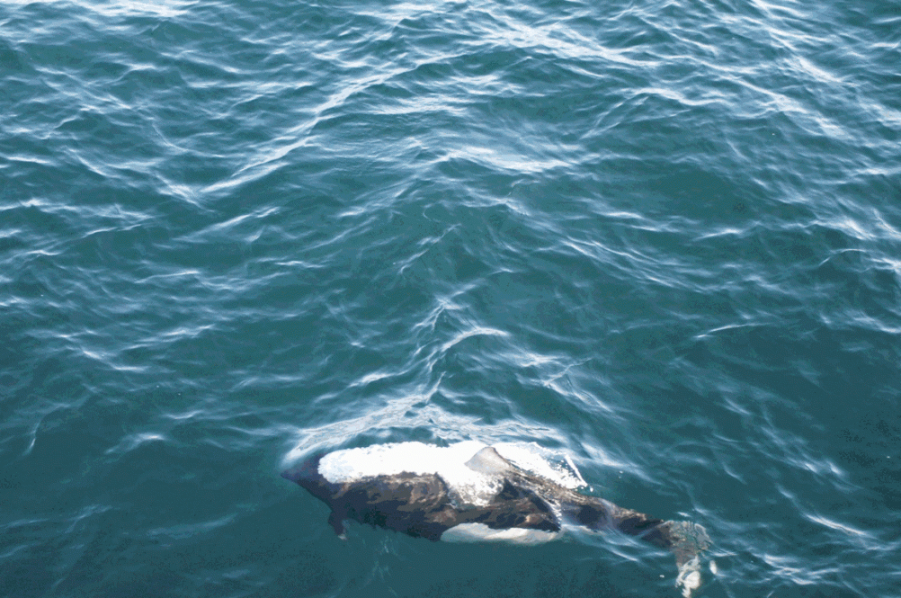 Да касатка это, касатка, кит-убийца который. Он еще тюленей местных хавает. А для дельфинов, имхо, море холодное.