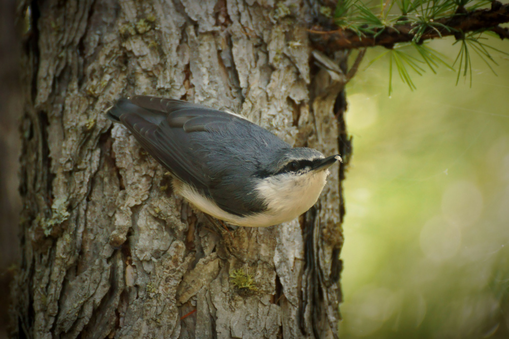 Поползень с личинкой древесного жука (усача).