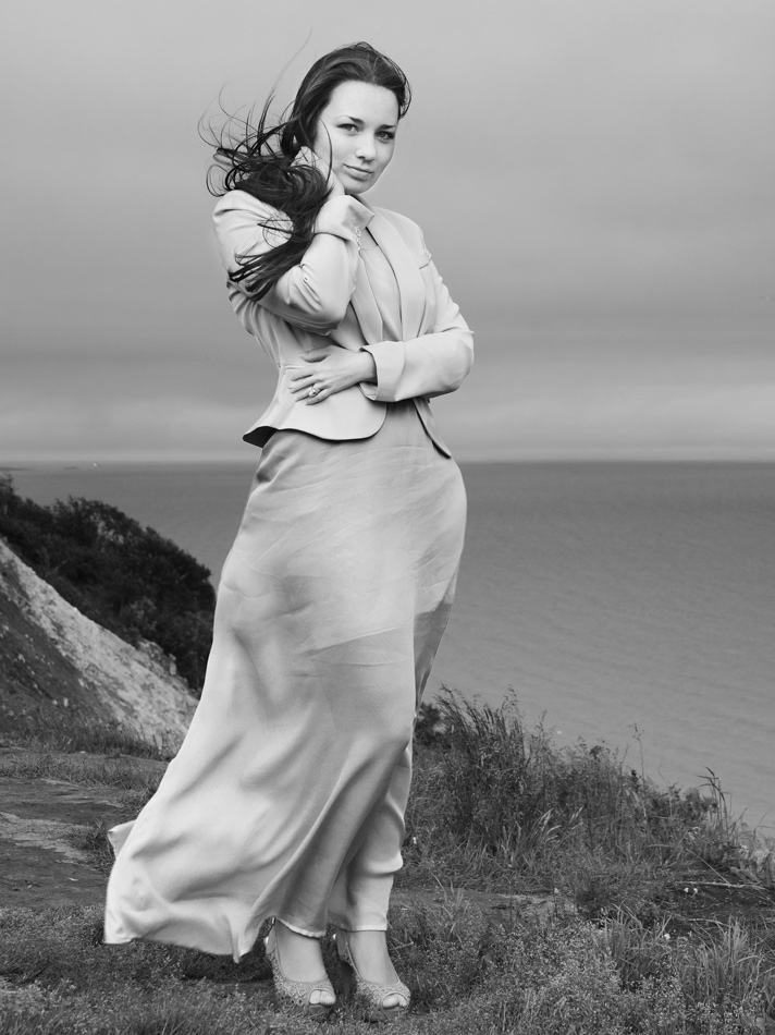 Я тоже не мастер,но мне не нравится линия моря режущая посередине кадр,бросается в глаза небольшая кисть руки,кажется непропорциональной. Вот изменить эти моменты и очень даже может быть-))