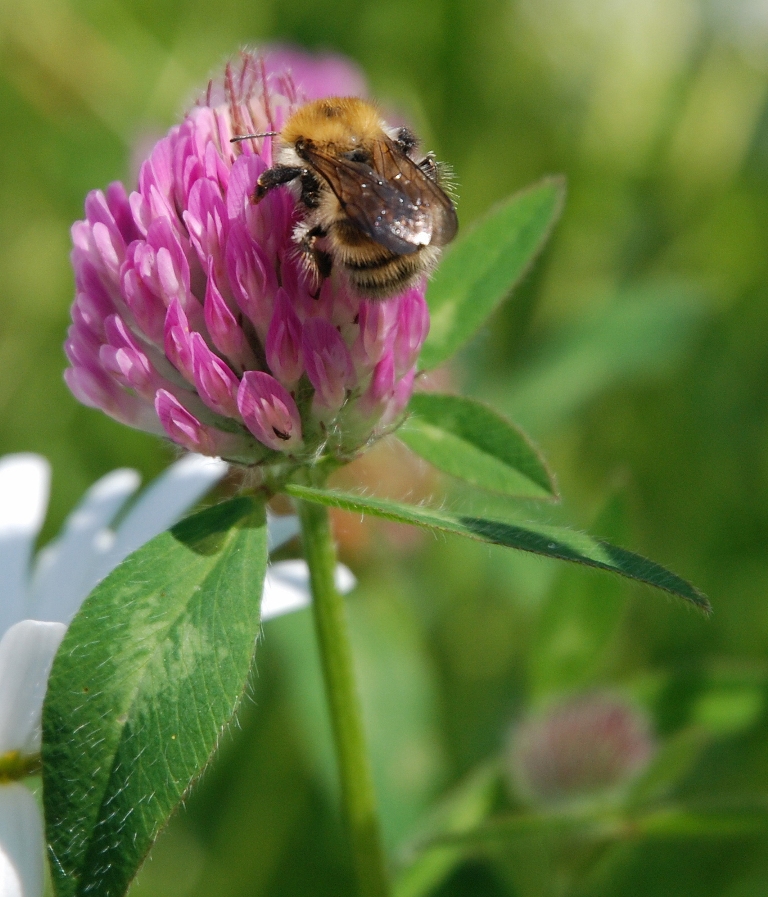 Шмель обедает в клеверной столовой.