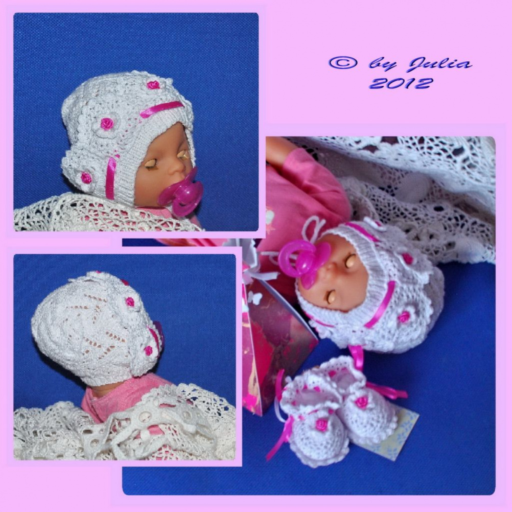 Шапочка для новорожденной в комплект к крестильным пинеткам. Подробности тут: http://tvmasterskaya.pitnet.ru/239