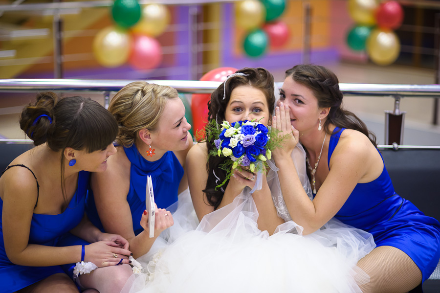 Неудачно невеста закрыла лицо. А подружки молодцы, хорошо подготовились к свадьбе. Красивые платья.)