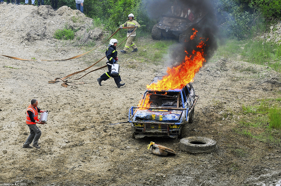 "Тушите ... тушите ... " - приговаривал дядька, подливая свежую порцию бензина )