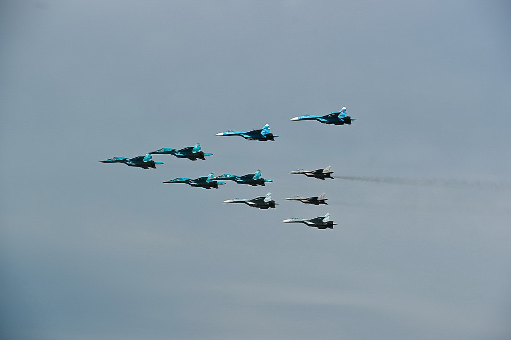 4шт. СУ-34, 4шт. СУ-27 и 2шт. МиГ-29
