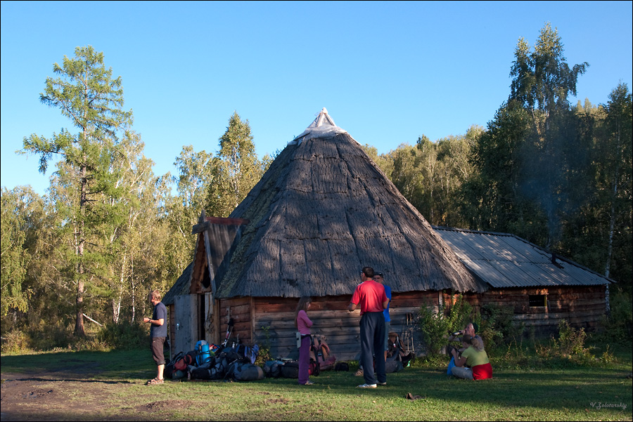born_in_USSR, местная, алтайская... Как мне сказал напарник, данный аил знаменит своими лепёшками, но мне отведать не удалось - группа, которая на снимке, вернувшаяся только что с Белухи, последнее на вечер выгребла... :)