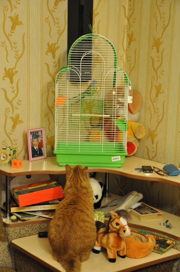 Подарили мелкой сестренке на Новый год 2 попугаев. КОТ был счвстлив=)