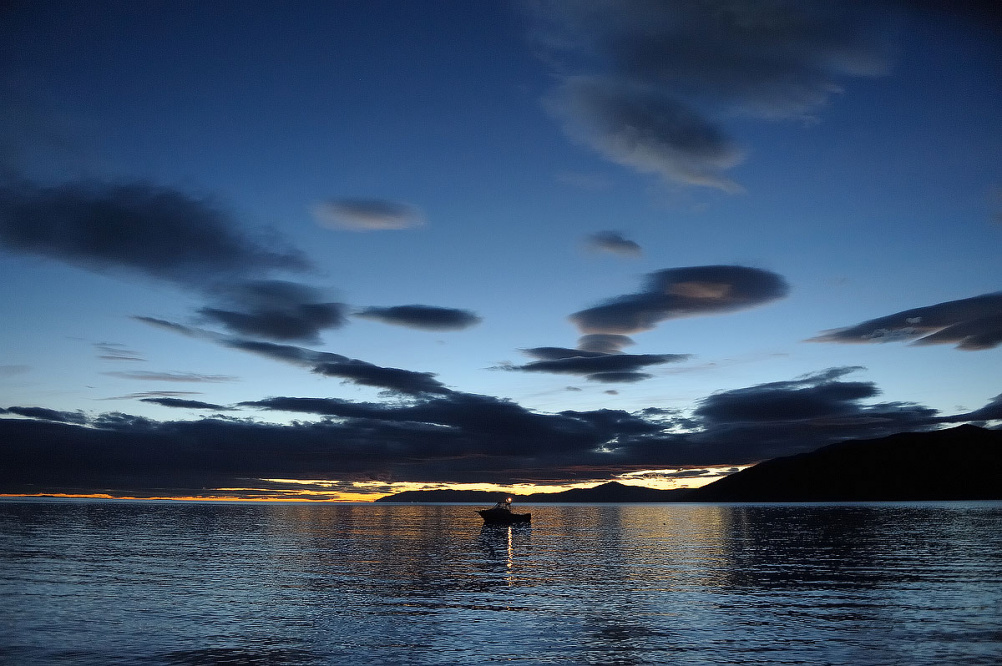 Жаль, что не было никакой технической возможности запечатлеть вспыхивающую сотнями искр от прикосновений вёсел воду, светящиеся след за кормой и тонкую полоску прибоя.