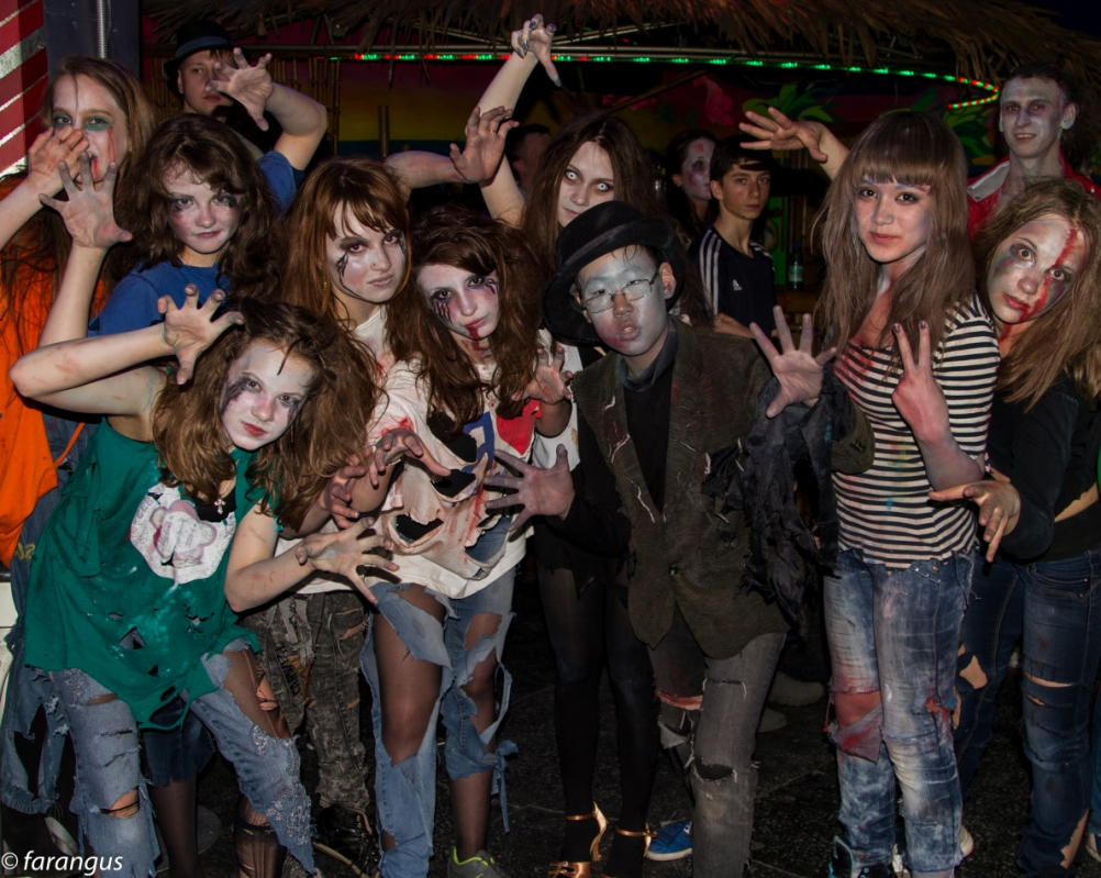 Валера, Вам вот 23, мозг должен хотя бы зародиться, наверное... Или нет? ДЕТИ гримировались сами, им был интересен весь этот процесс. И в темноте смотрелось это круто. Это не грим для фильма о зомби (ни времени, ни бюджета).