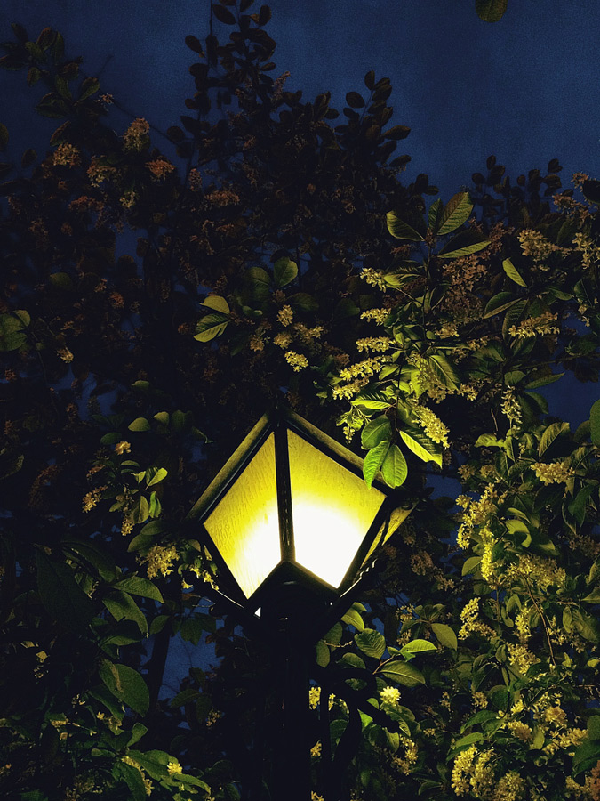 мм... возле мэрии... всегда любуюсь этим фонарем, когда черемуха цветёт :)
