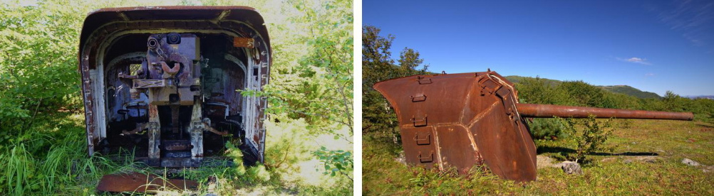 небольшая поправочка: Б-13, без "с". Было три серии, это самое "современное", третьей серии - скругленный корпус. Одно орудие 2й - серии (квадратный корпус) тоже там есть, крайнее восточное. Такое же стоит у Подвига, и было на Островном, пока не порезали мародеры.