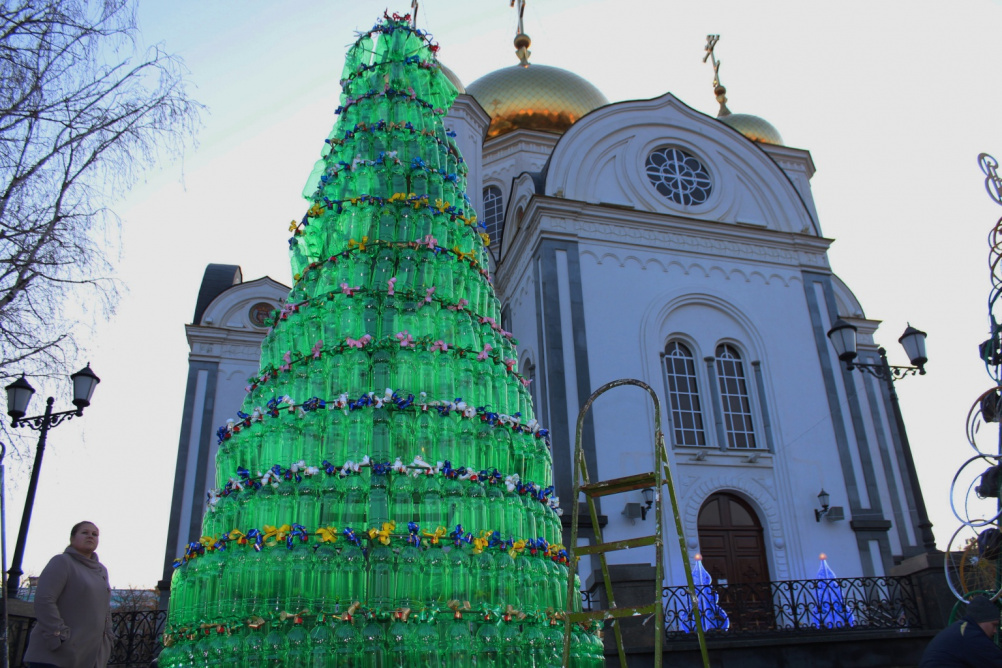Мне показалось бутылки с водой. Вообще странное сооружение у храма Александра Невского.