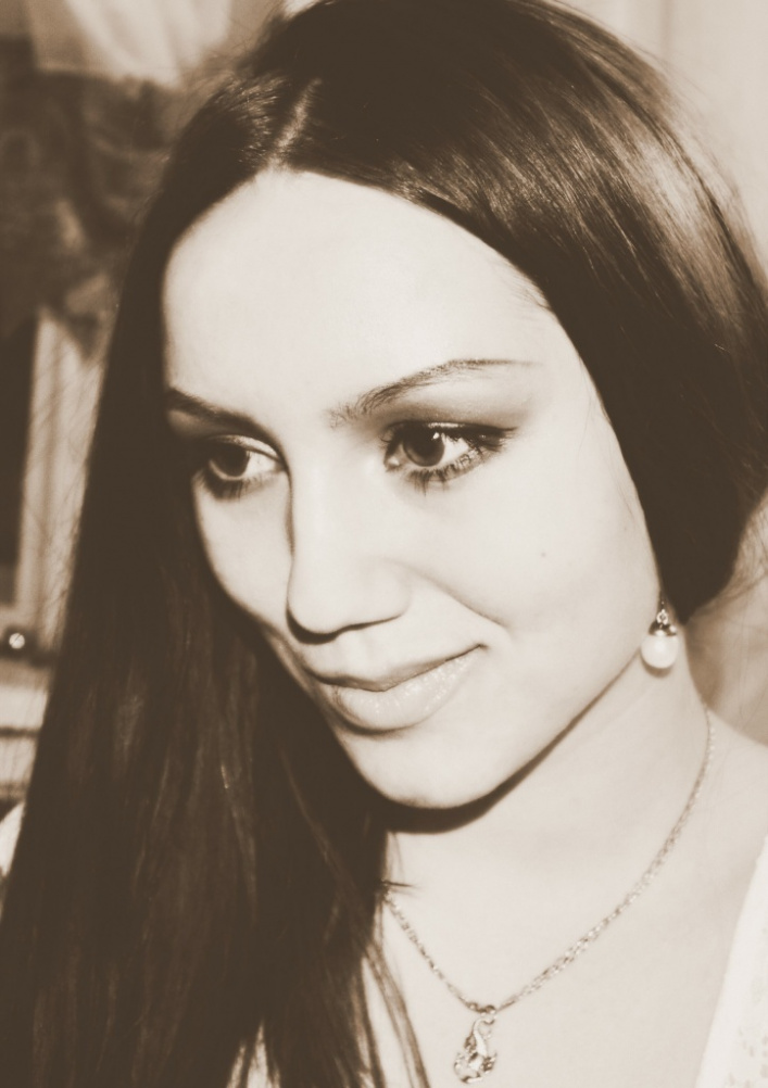 первое что бросается в глаза - это ваши глаза. Очень красивые. Да, и кривоватая улыбочка придает лицу некой таинственности:) Нравится фотография.