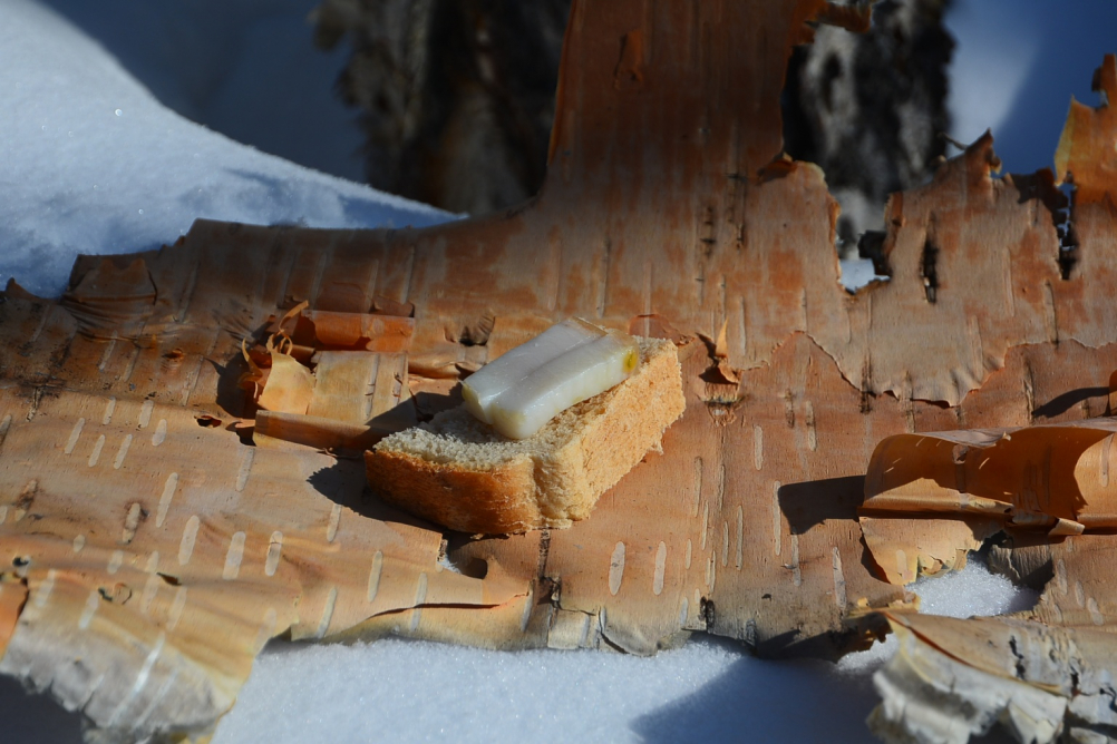 захотелось сказать- какое одинокое сальце!))) А как подумаешь, где оно лежит и как смачно и как вкусно оно пойдет на природе в рот....ММММММ бежишь за салом в холодильник)))) Отличное фото! Зимнее))))) Природное)))