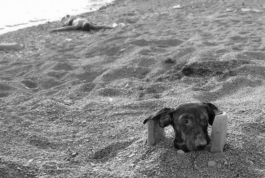 это за что так её?спрятали от солнышка на пляже?)