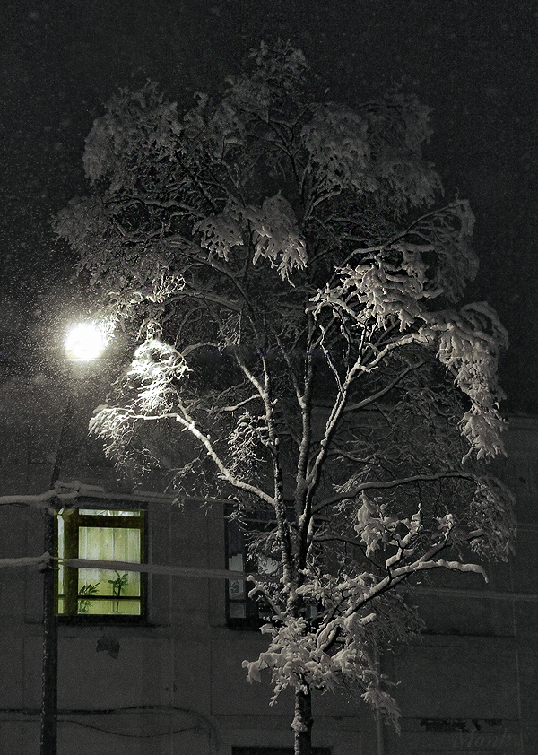 по летнему зеленое цветное окно, а вокруг снег)