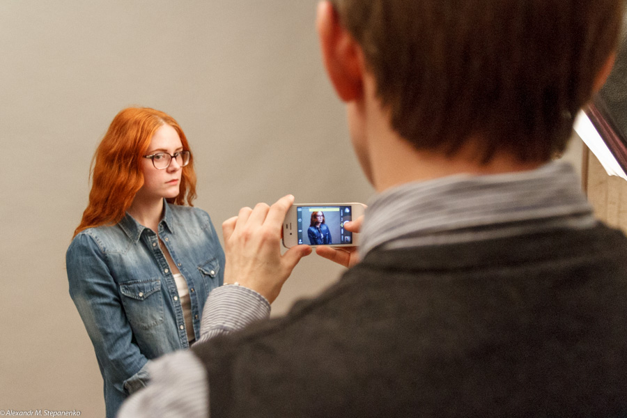 Немного поясню: это я снимаю Катю в студии Фотохолл после встречи, посвященной мобилографии.