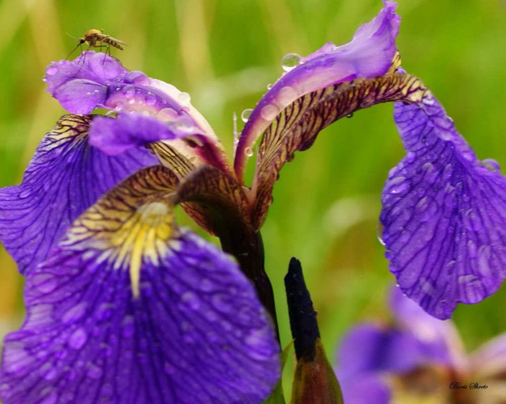 Макро, природа, капли воды, комар на цветке