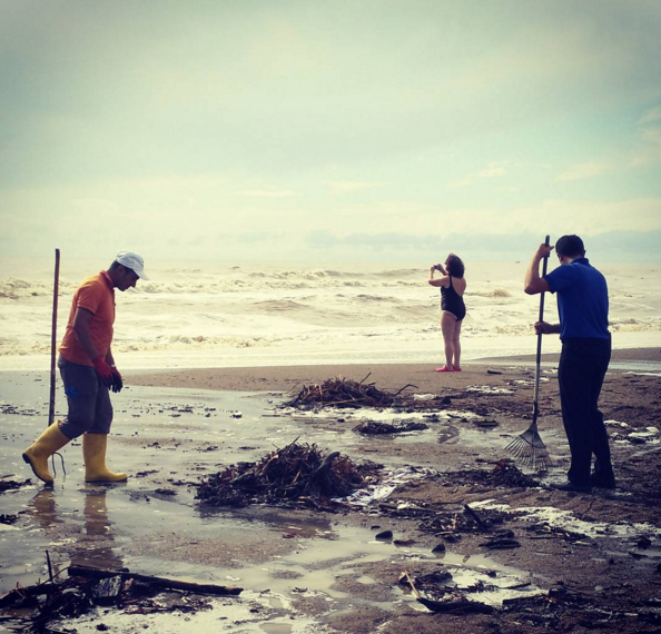 Желанию отдыхать русским туристам равных нет. Еще не закончились работы по уборке пляжа после шторма...