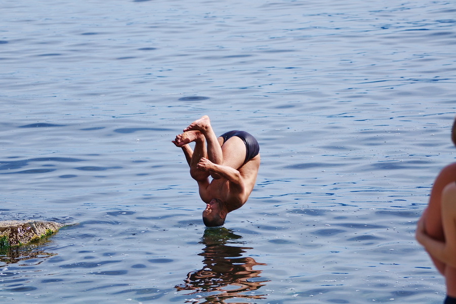 Бог по воде ходит, а этот дядька и на голове хорошо держится:)))