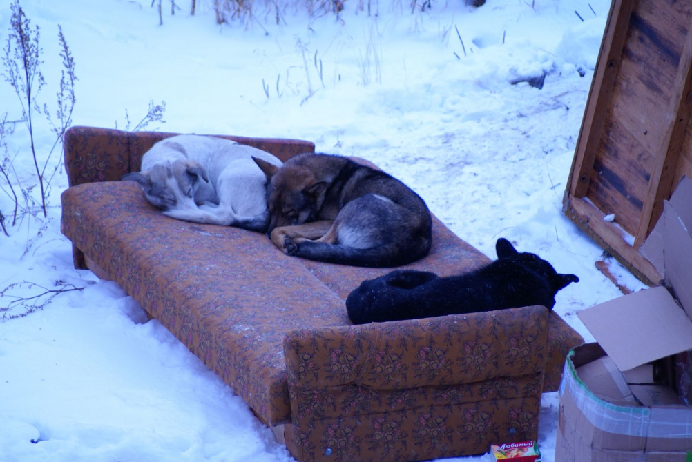 Мне понравился момент, как стайка собак на морозе вместе греется, эта картина вызвала у меня определенные чувства, не только жалости, захотелось поделиться ей с людьми.