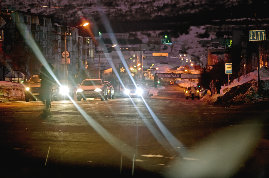 Чавой то пешеход слева на одной ноге?