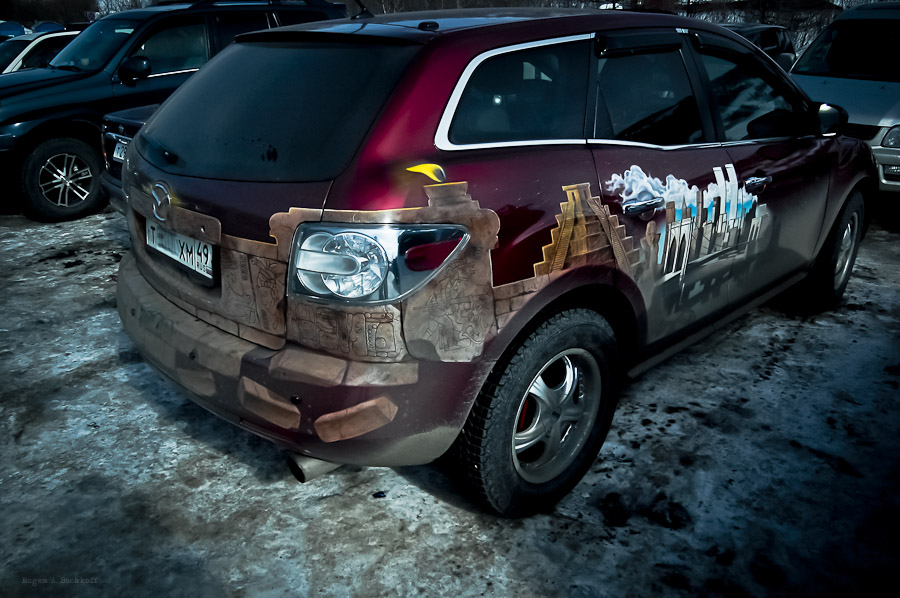 Что-то не очень нравится. Мне кажется машина и без аэрографии выглядела б красивее, ну как говорится на вкус и цвет...