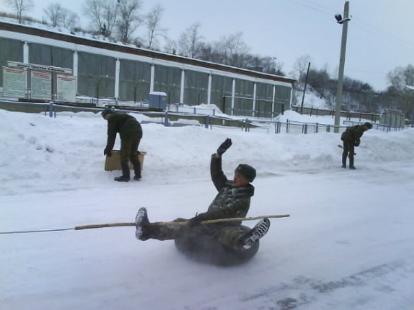 у меня знакомые катались на лопате, хоть и не в армии))я просто плакала смотря на это..))