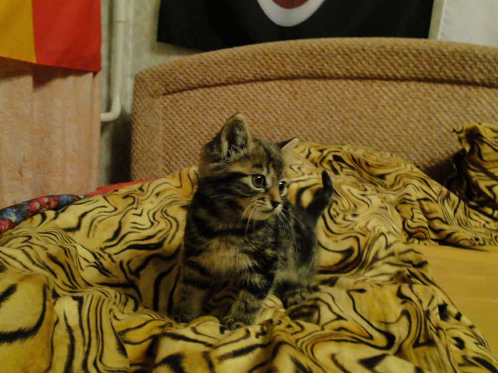 1.5 месяца, приучен к лотку, тигровый окрас,умный и ласковый.
