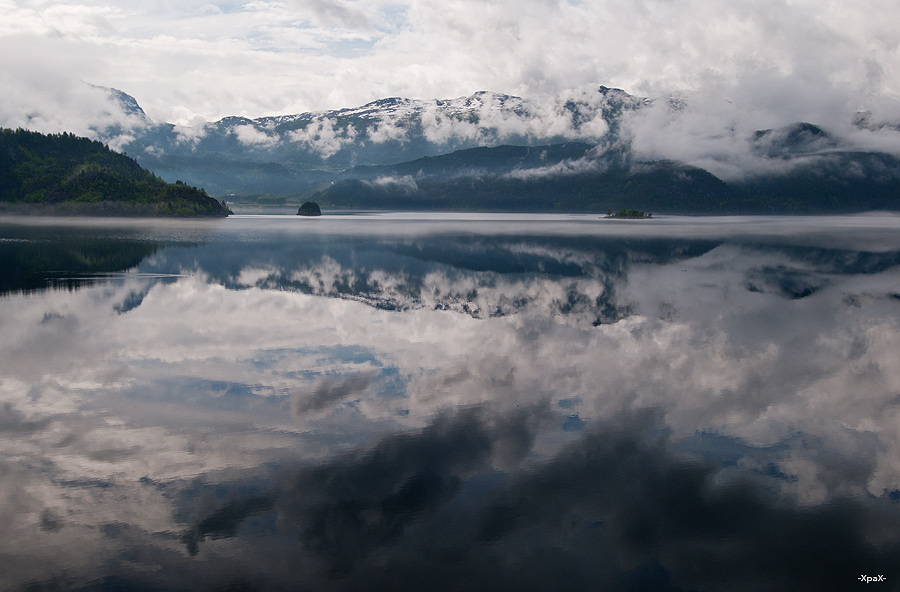 Такие цвета необычные. Вроде мрачные, а не грустно. Вдали на сопках солнечный свет...