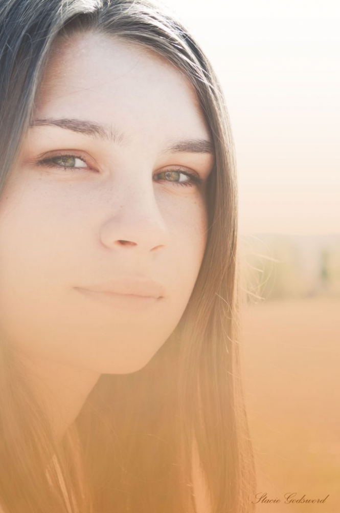 А здесь же - внимание сразу сосредотачивается не на взгляде, а на нижней части фото, слишком засвеченной.
