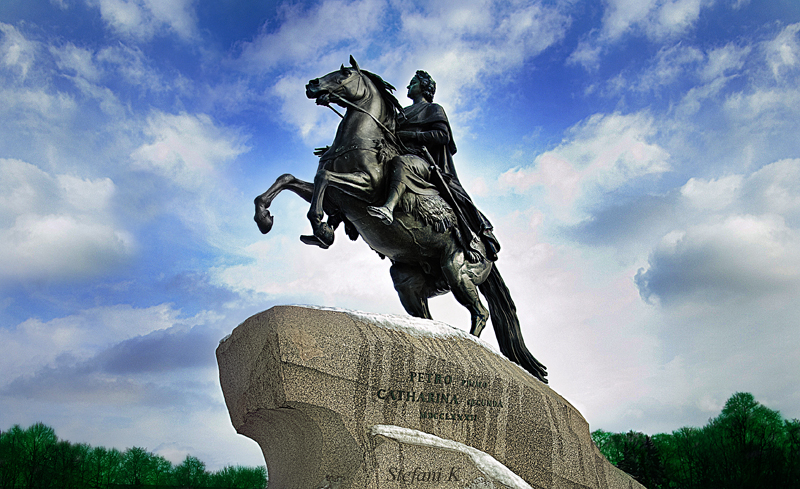 зима, памятник Петру на набережной.