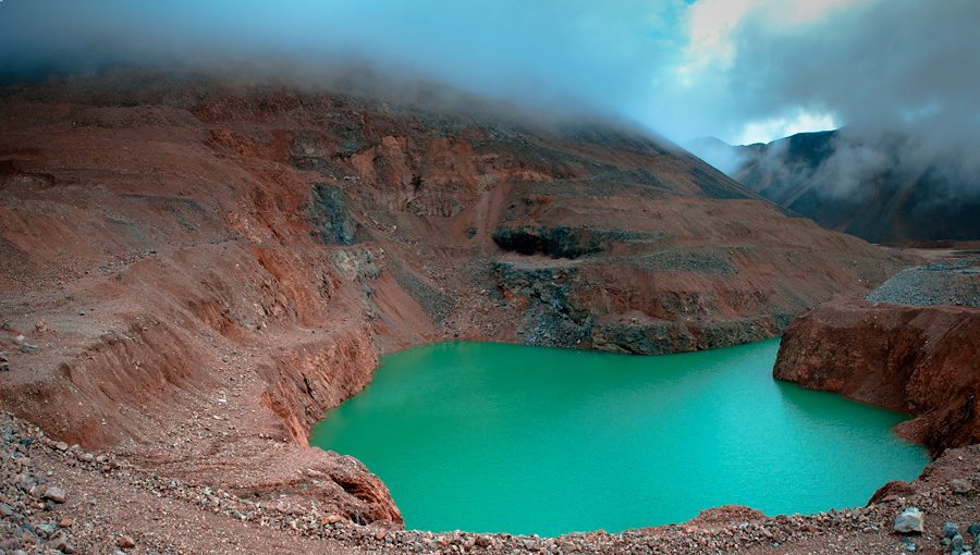 Это старый затопленый водой карьер. Вода чистая, цвет видимо от руды