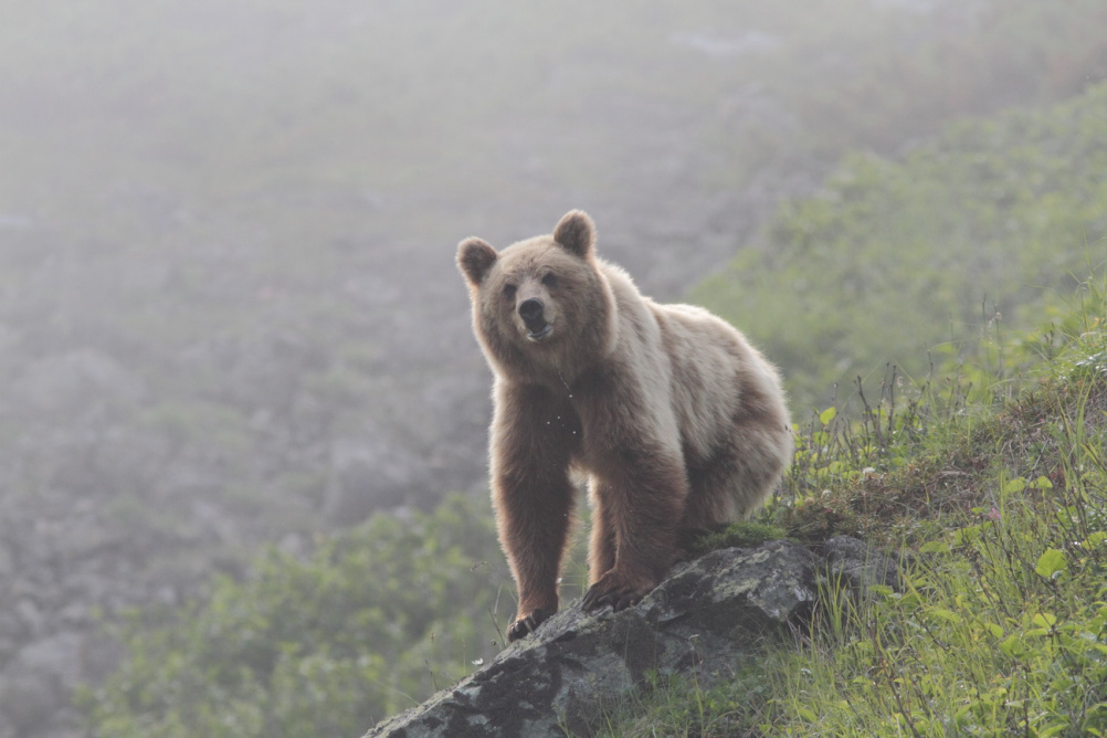 maxima, Был легкий туман. Когда приближаешься, медведь нервничает ( слюни текут) и отбегает.