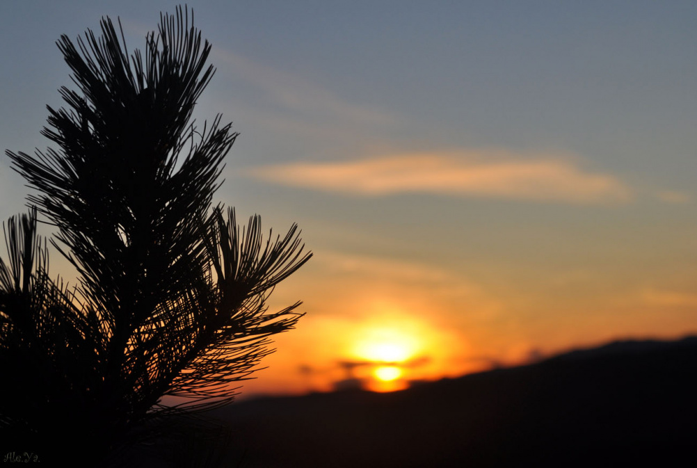 смотреть на заходящее солнце сквозь иголки.