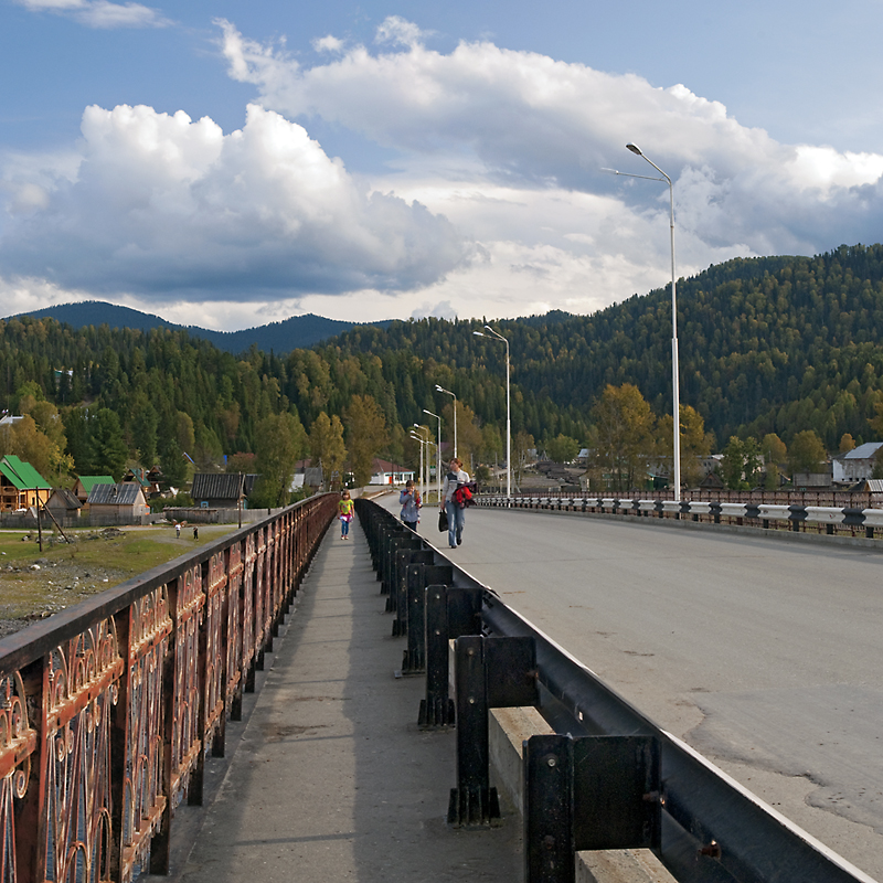 Мост, разделяющий оз. Телецкое и начало реки Бия