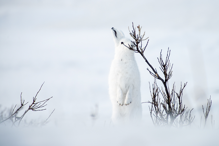 История «лунного» зайца. Снимок сделан на Чукотке, в Билибинском районе. Вечером мы с другом поехали на съемку зайцев, которых я заприметил за пару дней до этого.