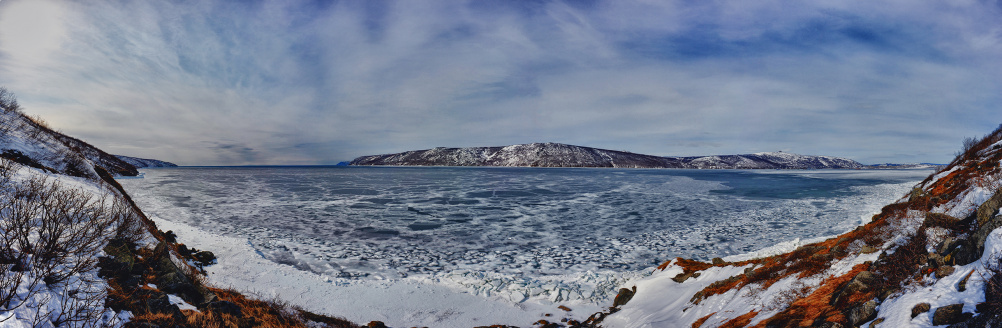 Справа вдалеке Магадан, слева выход из бухты и открытое море.