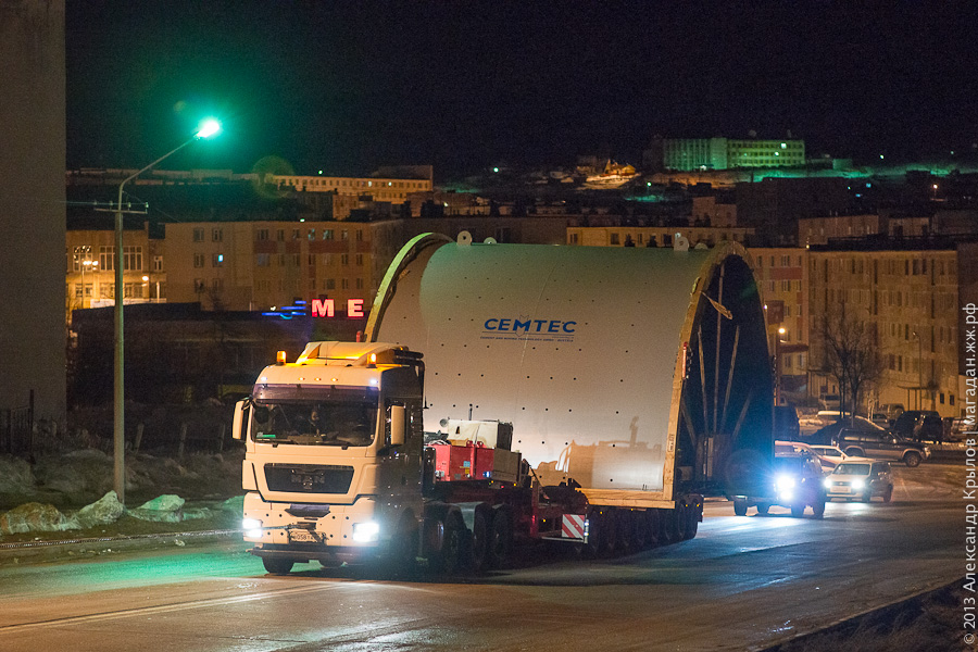 В Магадане стартовала уникальная операция по перевозке самой крупной в мире мельницы для золотодобывающей фабрики рудника им. Матросова.