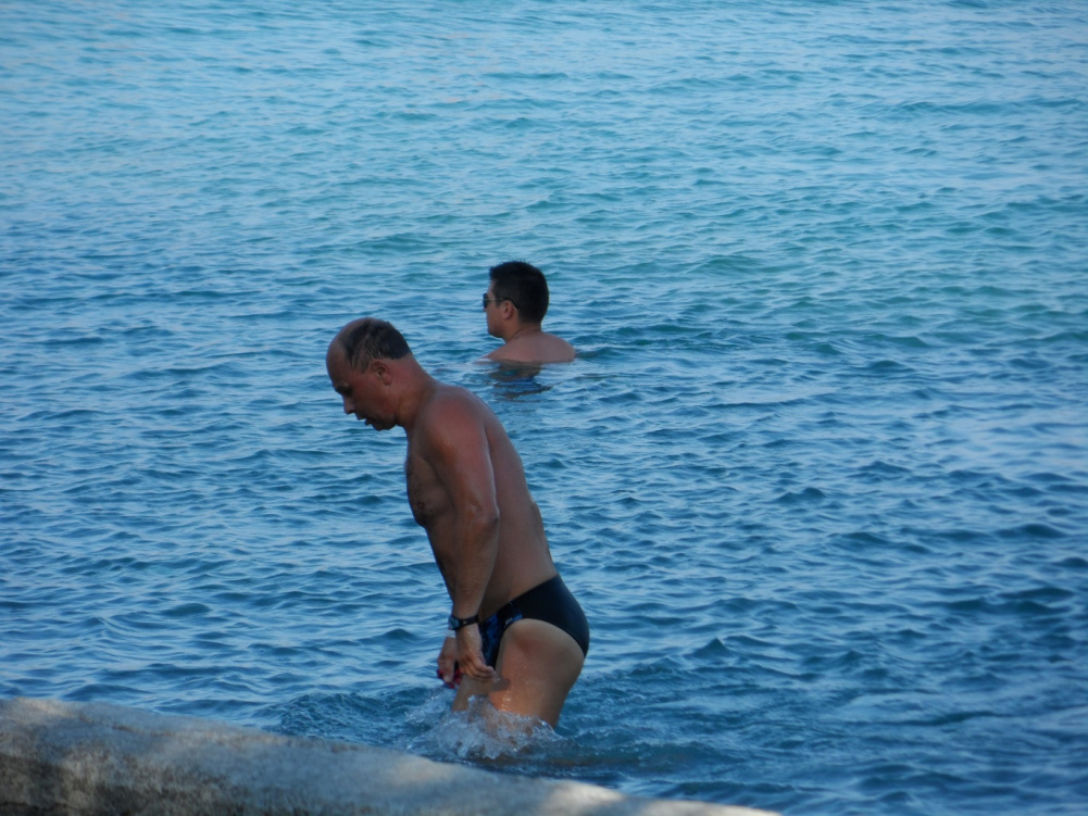 Дядя. 54 года. проплыл 1 ч. 27 мин. без остановки в бухте Mirabello (Греция). Мы всем пляжем смотрели и переживали. Видимо спортсмен-проффи.