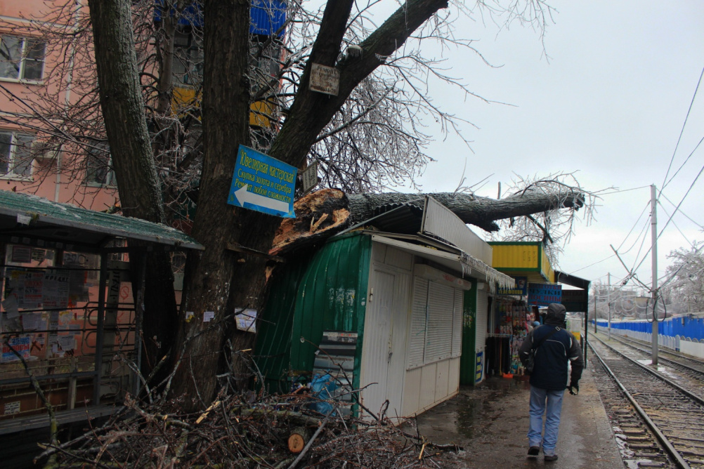 Да, это дерево почти на трамвайную остановку упало...
