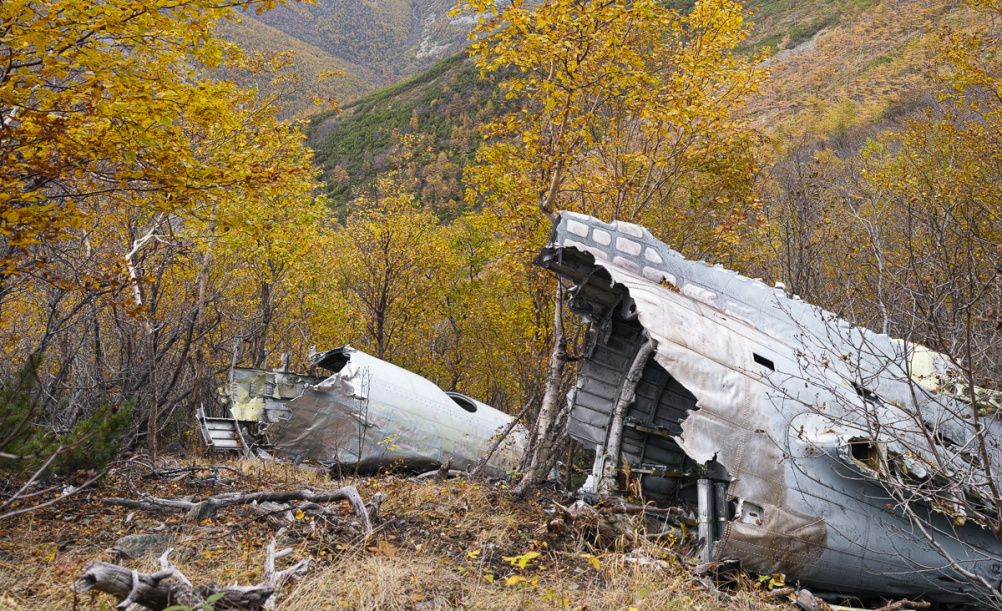 остатки самолета в ста метрах в распадке лежат