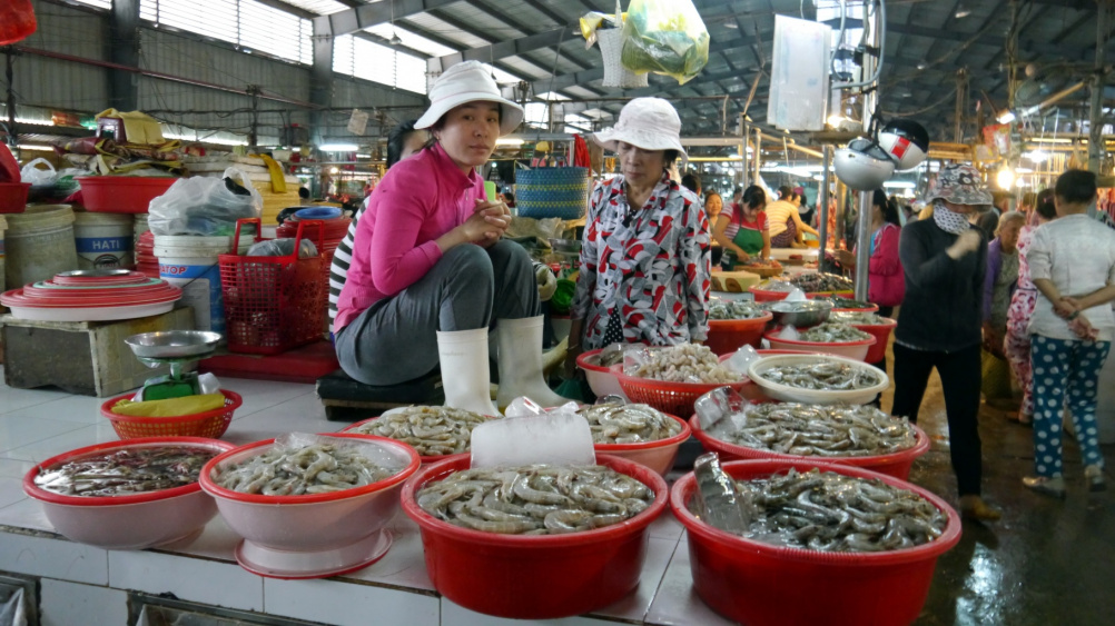На самом обычном городском рыночке во Вьетнаме. Что удивило на рынке, что продавцы сидят с ногами на прилавках. Потом привыкла. И даже "с ногами" у них продукты свежее, чем у нас.