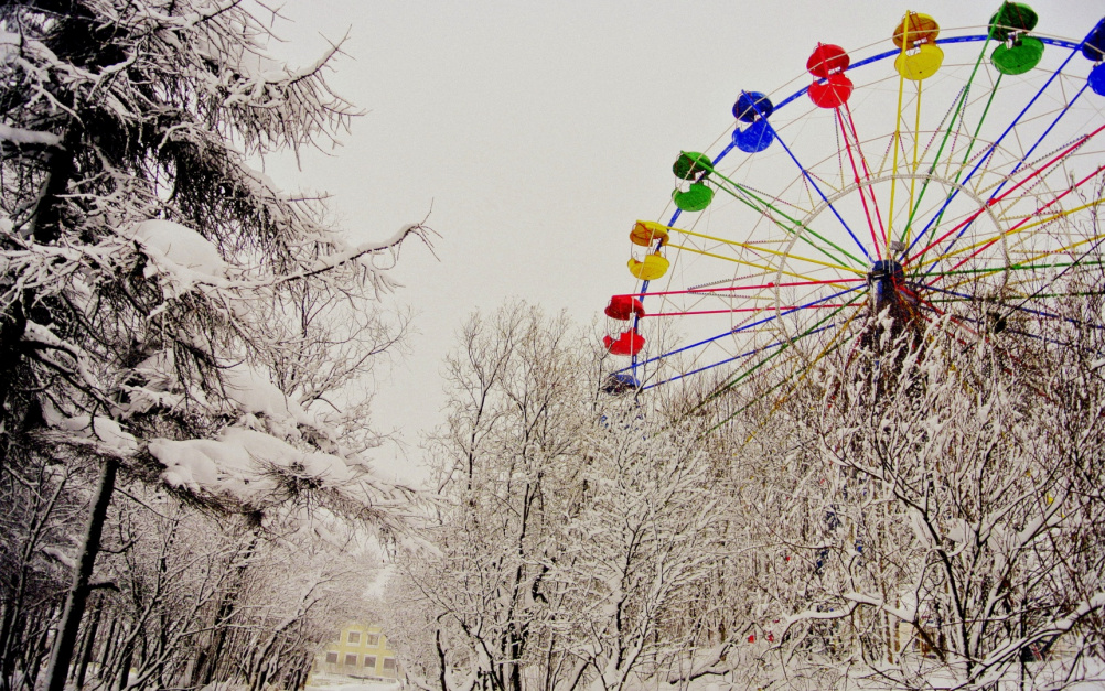 Начало зимы. И все таки разбавляют яркие городские детали белоснежные дали.