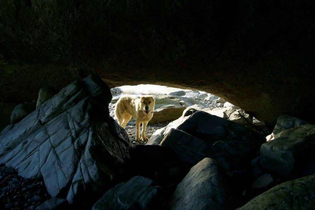 Это первый житель мыса, которого я встретил на своем пути. Затем, когда ждали отлива, чтобы пройти к гроту, она с шенком Адяном (фото выложу позже) сопровождали нас. Фото было сделано из лаза, через который я прошел не дожидаясь, пока вода отойдет от скал.