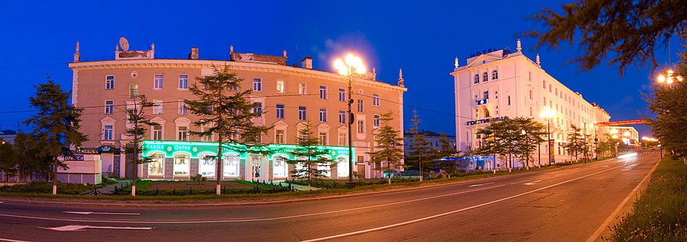 Надо ставить прямоугольную проекцию (или как вариация - меркатор), а не цилиндрическую. Бочкообразные здания на панорамах что-то не але.