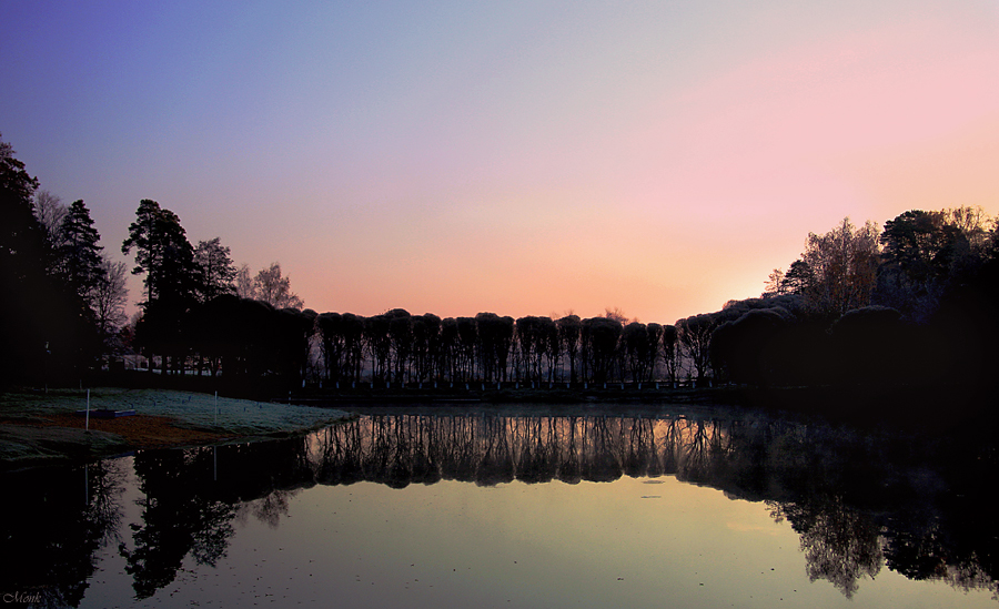 Прозрачно, изящно, ажур деревьев отражается в зерцале воды