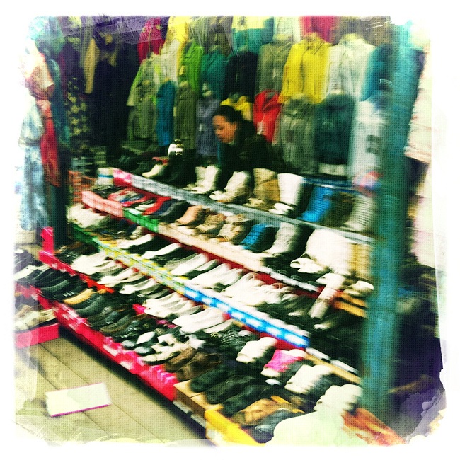какая радостная красочная фотография, и столько обуви красивой, и девушка мммм