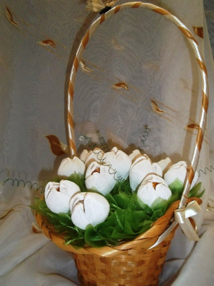 lisiCa, Спасибо! Эта корзина делалась на 8 марта. И тюльпанов было тогда сделано столько, что они потом мне снились)))