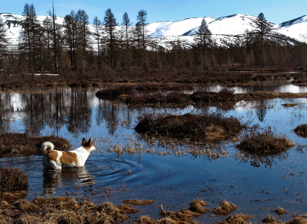 А я смотрю эта собачка и зимой и летом по лужицам гуляет! Земноводное создание=)